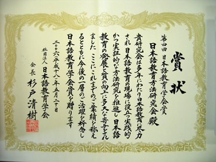 当学会は,日本語教育方法研究会の以上の活動と将来にわたっての活躍を期待し,学会賞を授賞する。